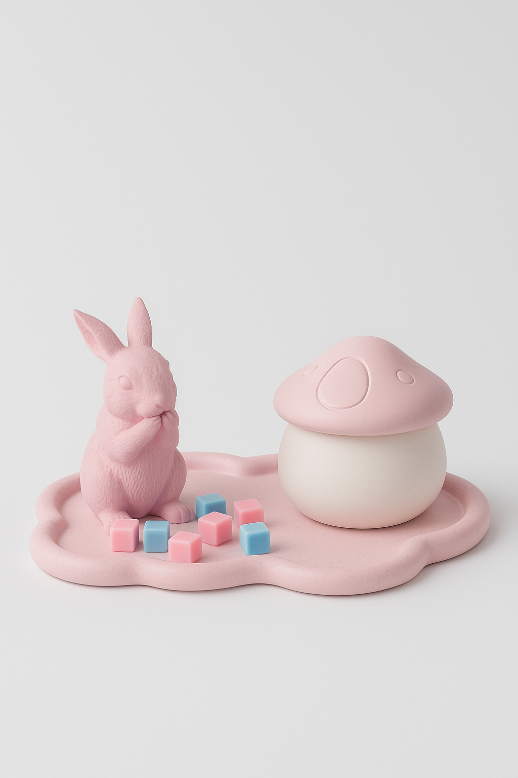 Introduce a touch of playful elegance to your space with our Bunny & Mushroom Duo. This handcrafted set is designed to spark joy and add a soft pastel charm to any room.