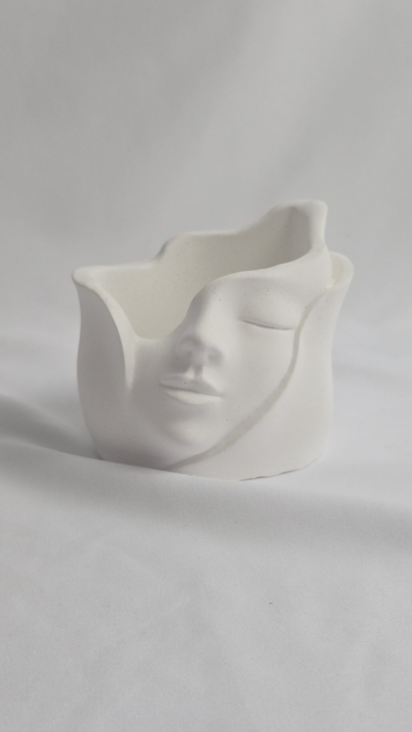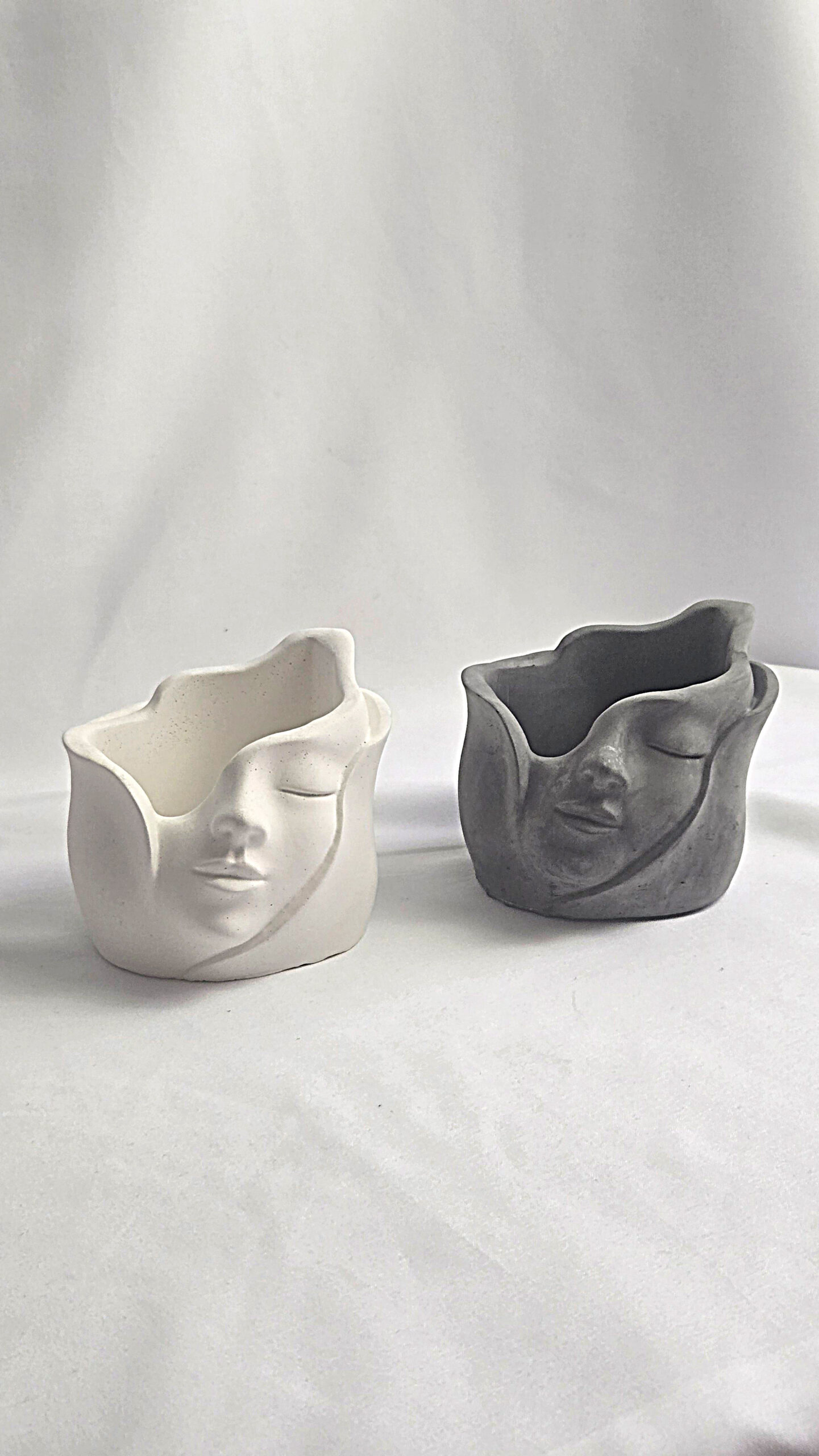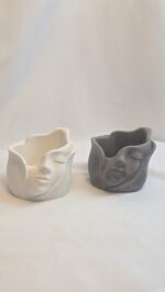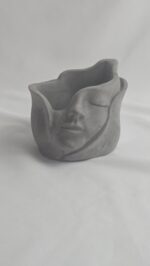 A handcrafted cement piece designed with a serene face sculpture that brings elegance and calmness to any space.