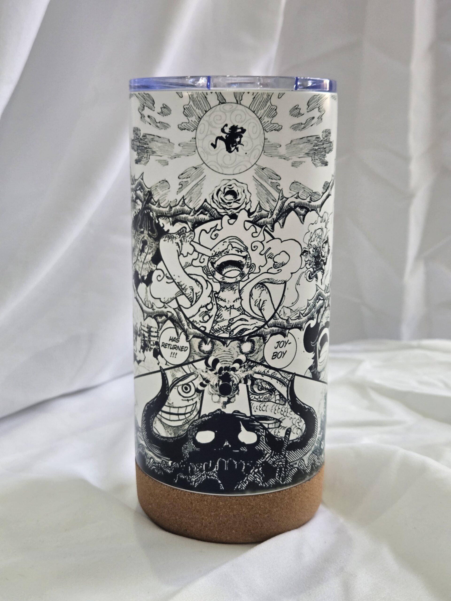 A modern travel tumbler with a cork base, perfect for hot or cold beverages at home, work, or on the move.