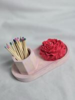 • Match Holder with Colorful Matches – a minimal pink-toned cement holder filled with multicolored tipped matches, making every lighting moment joyful.